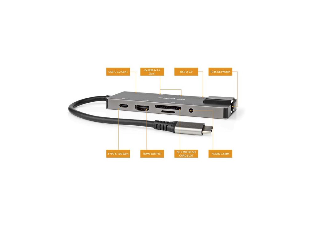 Nedis CCBW64775AT02 - Dokovací Stanice | USB 3.2 Gen 1 | USB-C™ Zástrčka | RJ45 Zásuvka / SD / Výstup HDMI™ / 2x USB-C™