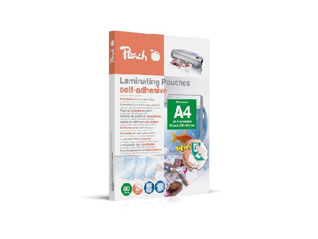 PEACH laminovací folie A4 (303x216mm), 80mic, lesklé, samolepící, 100ks