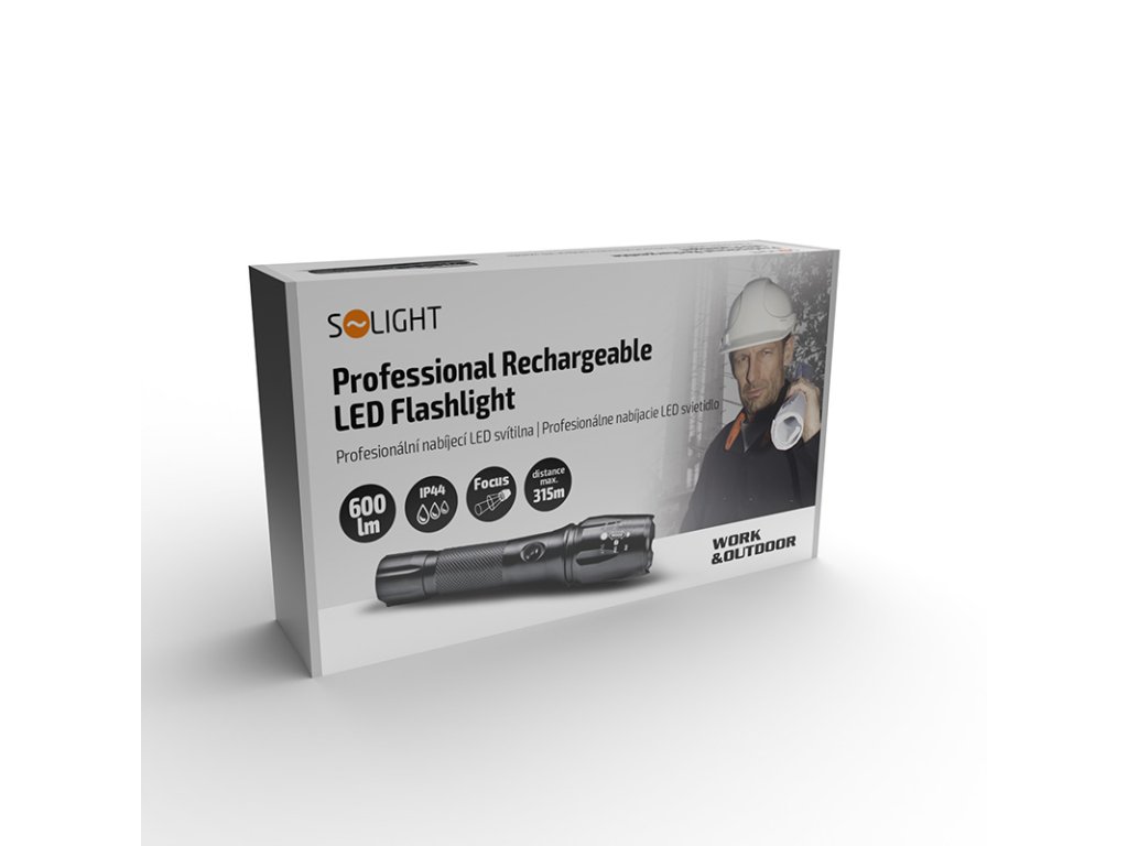 Solight LED nabíjecí profesionální svítilna, 600lm, T6 XML Cree LED, zoom, Li-Ion