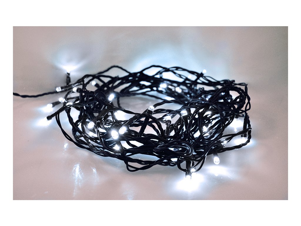Solight LED venkovní vánoční řetěz, 100 LED, 10m, přívod 3m, 8 funkcí, časovač, IP44, studená bílá
