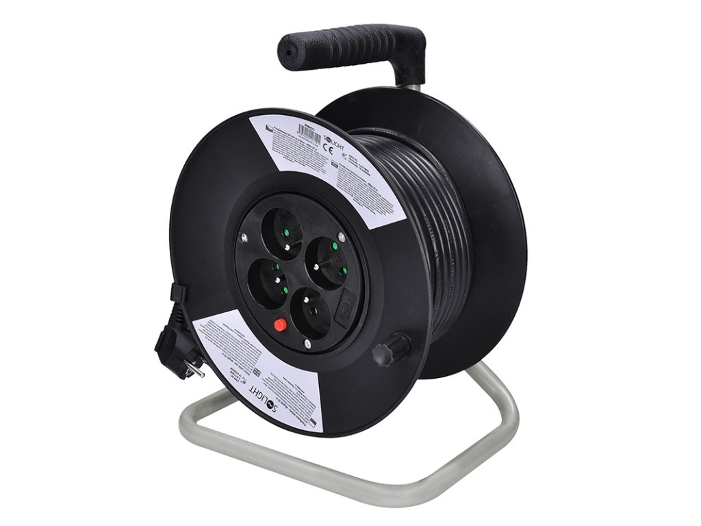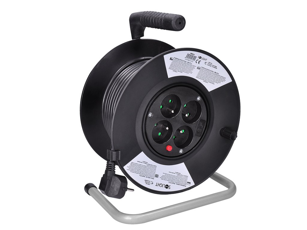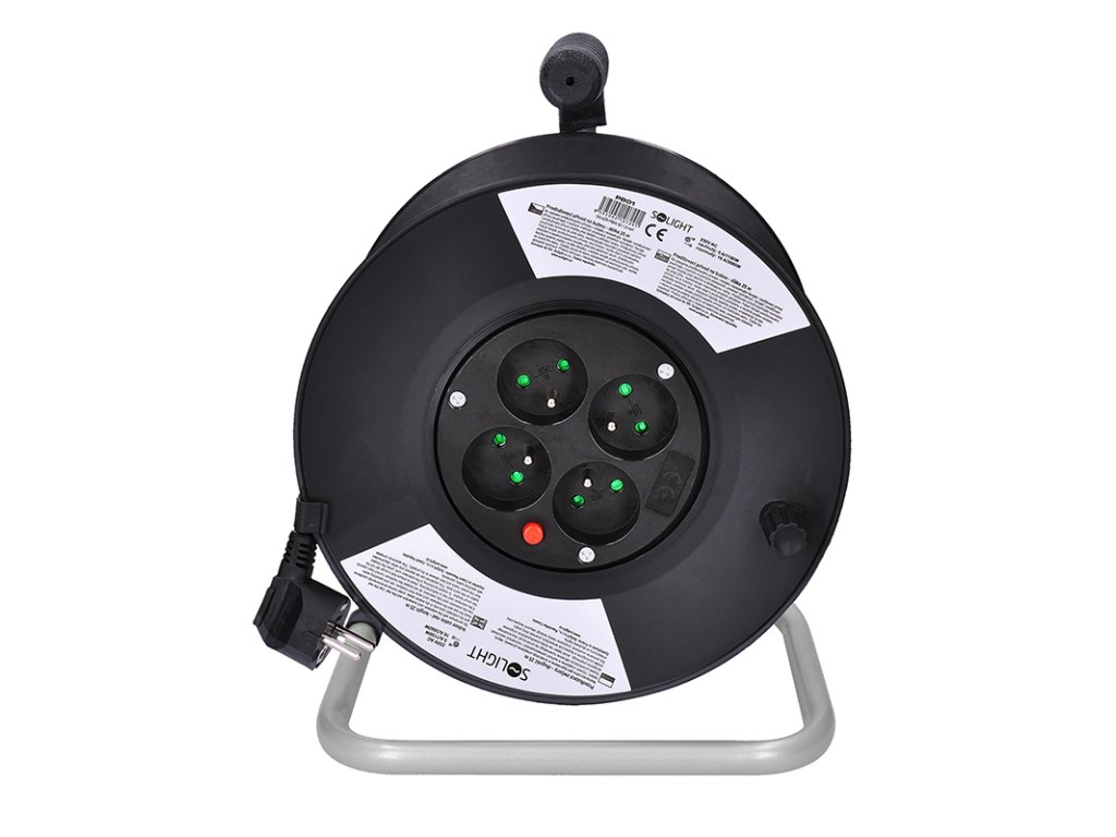 Solight prodlužovací přívod na bubnu, 4 zásuvky, 25m, černý kabel, 3x 1,5mm2