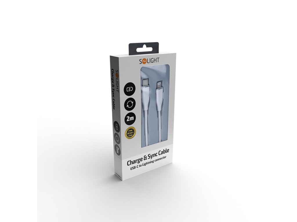 Solight USB-C/Lightning kabel, USB-C konektor - Lightning konektor, silikon, 2m