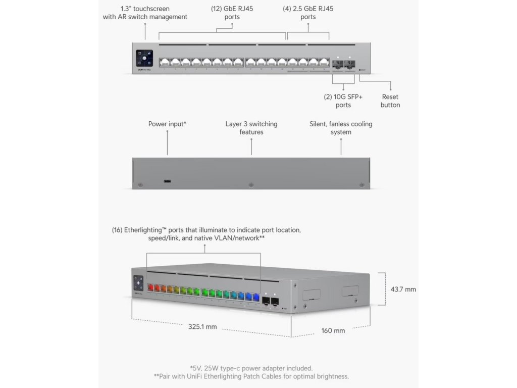Switch Ubiquiti Networks USW-Pro-Max-16 UniFi, 12x GLan, 4x 2,5GLan, 2x SFP+