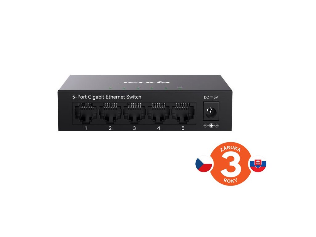 Tenda TEG1005M - 5x 10/100/1000 Mbps Kovový Switch, Fanless - bez ventilátorů, ochrana 6 kV