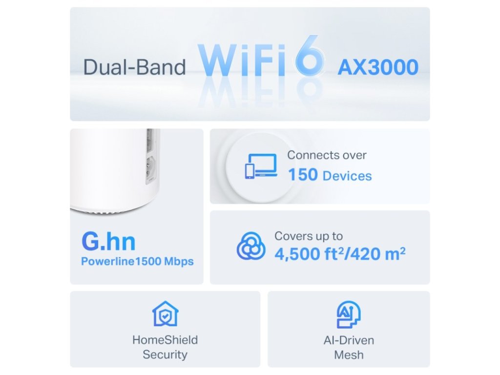 TP-Link Deco PX50(2-pack) - Powerline GHN1500 Meshový AX3000 Wi-Fi 6 systém pro chytré domácnosti , HomeShield (2-pack)