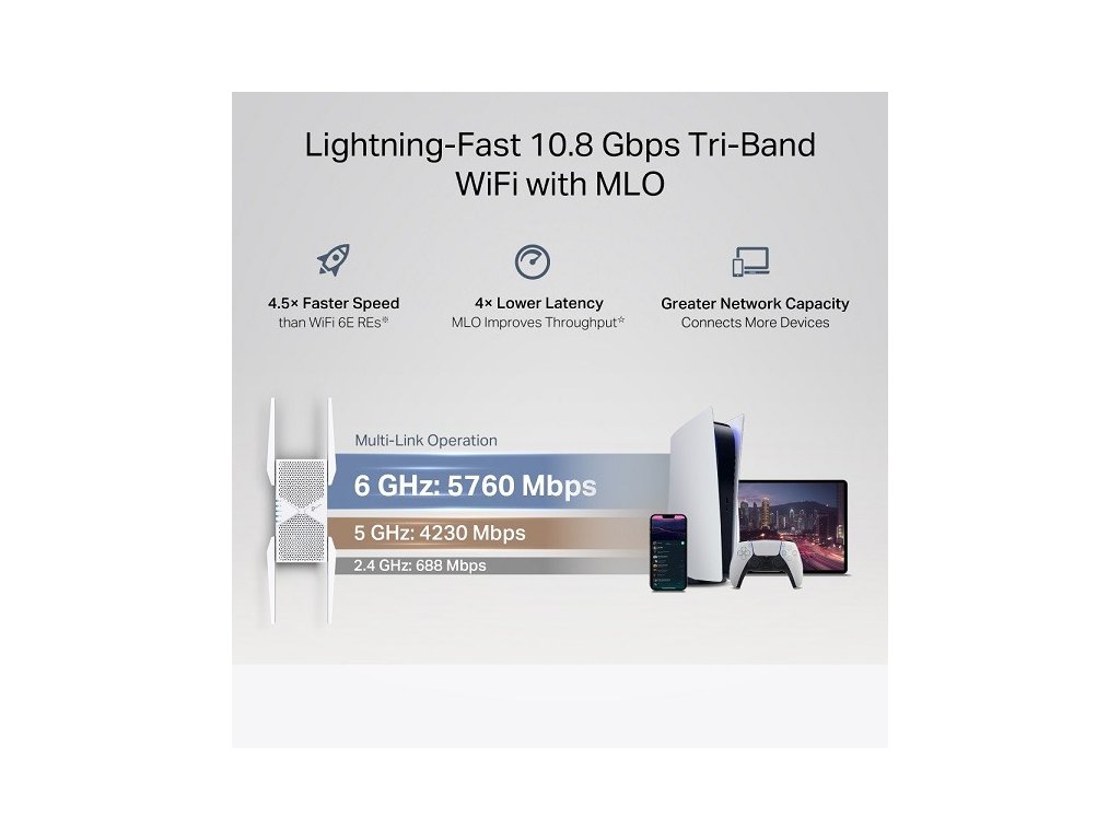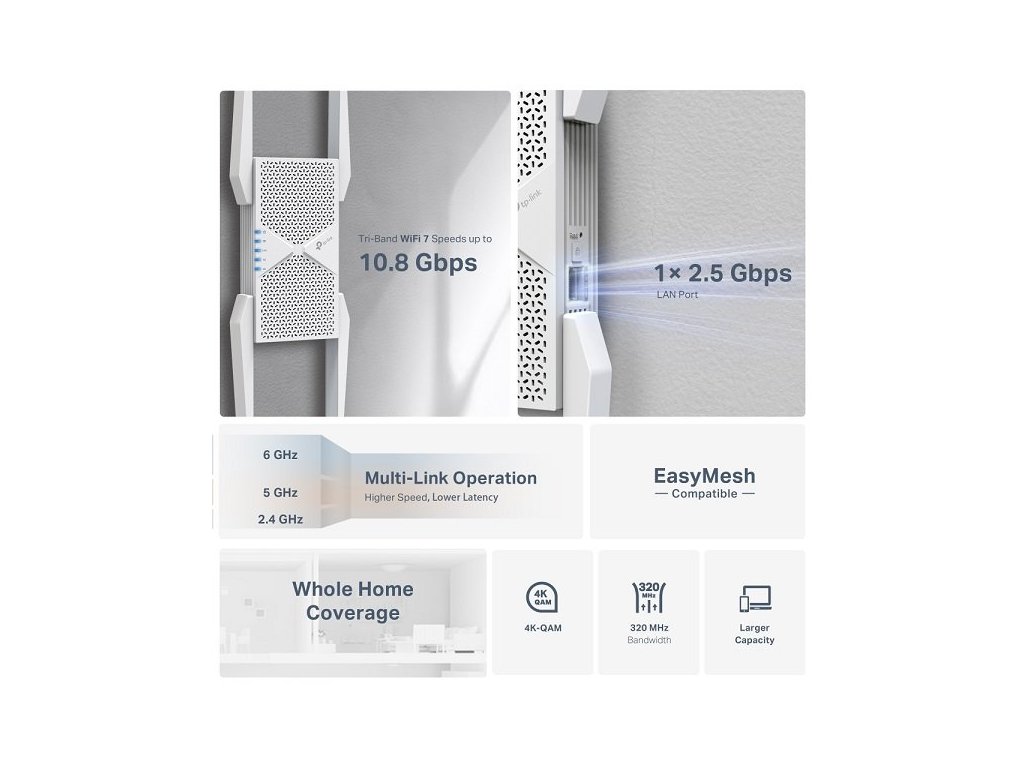 TP-Link RE655BE - Třípásmový extender dosahu Wi-Fi 7 BE9300
