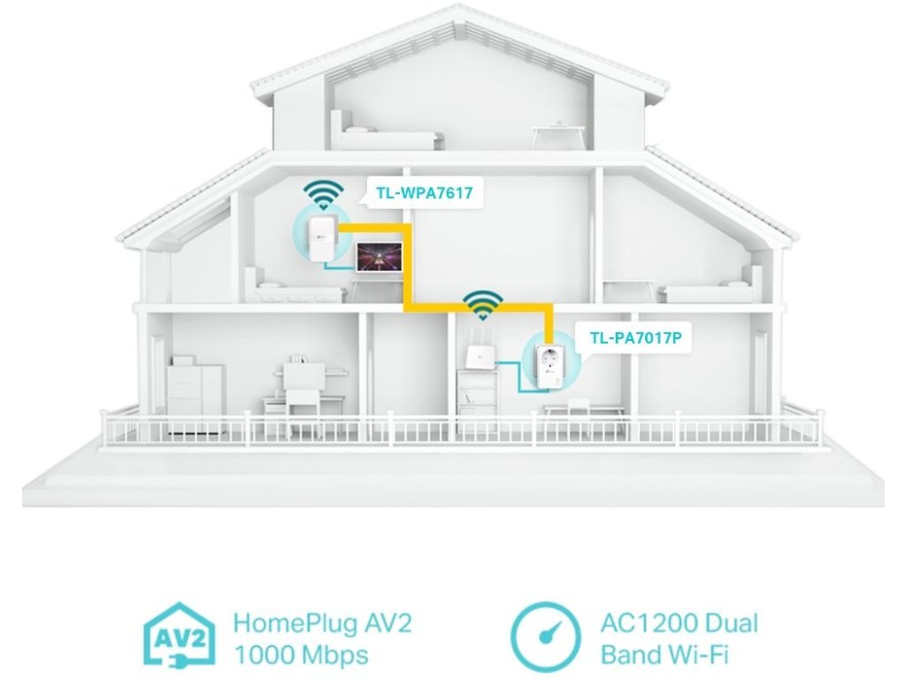TP-Link TL-WPA7617KIT - AV1000 Gigabit Powerline AC1200 Wi-Fi Kit, 1xGLAN - OneMesh™