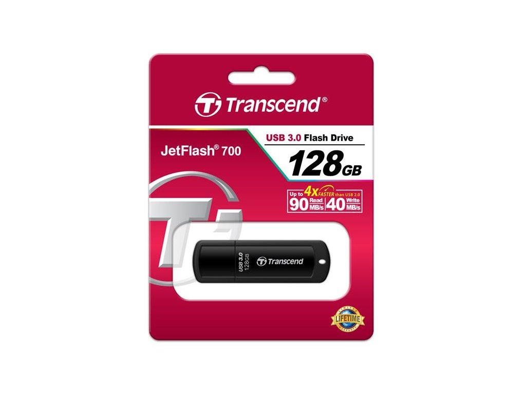 TRANSCEND Flash Disk 128GB JetFlash®700, USB 3.0 (R:90/W:40 MB/s) černá