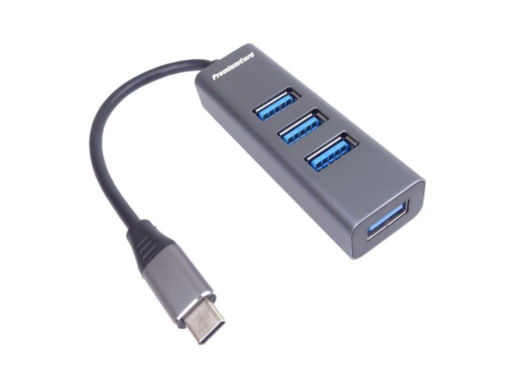 USB hub PremiumCord USB-C na 4x USB 3.2 A s 15cm kabelem, černý