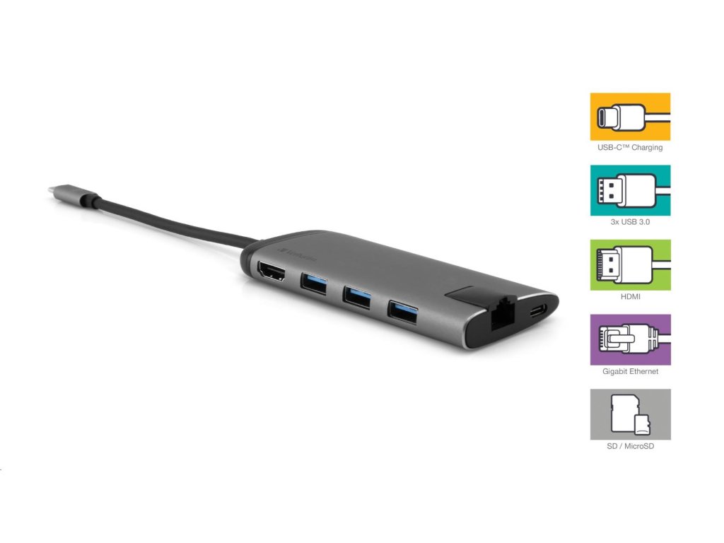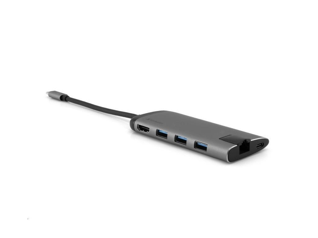 VERBATIM Dokovací stanice USB-C 7v1, 1xHDMI, 1xUSB-C, 3xUSB, 1xRJ45, čtečka SD karet, šedá