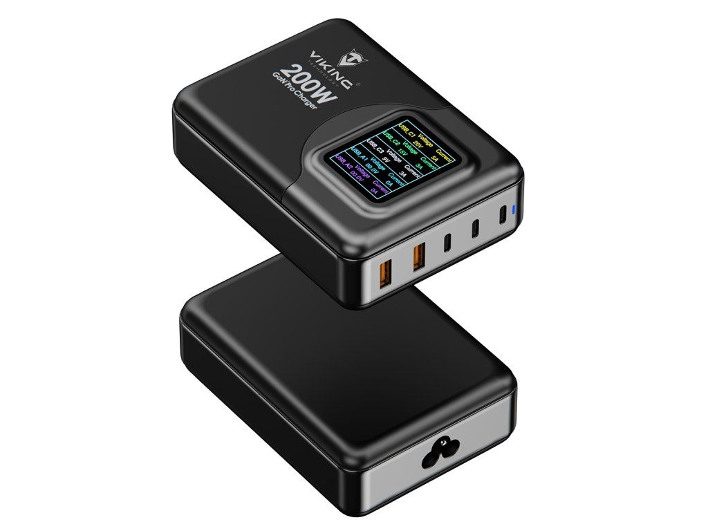 Viking USB GaN charger 200W PD PRO/síťový adaptér/Output:3xUSB-C,2xUSB-A/Rychlo nabíjení/