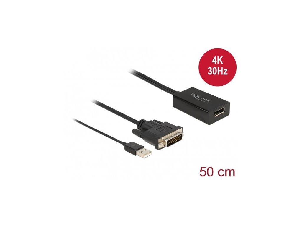 Delock Adaptér DVI samec na DisplayPort 1.2 samice černý 4K s funkcí HDR 50 cm