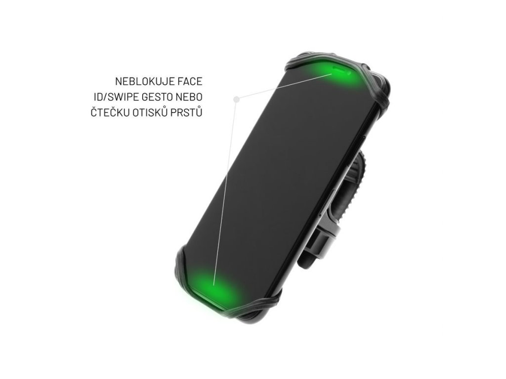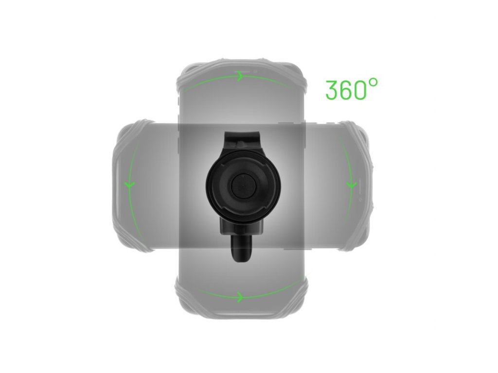 Tvar silikonových poutek pro uchycení telefonu je navržen tak, aby u daných telefonů nijak nebránil používání FaceID, Swipe i čtečce otisků prstů. Silikonová poutka držáku se dokonale přizpůsobí velikosti vloženého telefonu, jsou schopná bezpečně udržet všechny zařízení s úhlopříčkou 4 - 6,5 palců. Rotační základna držáku umožní natočit telefon do horizontální i vertikální polohy.
