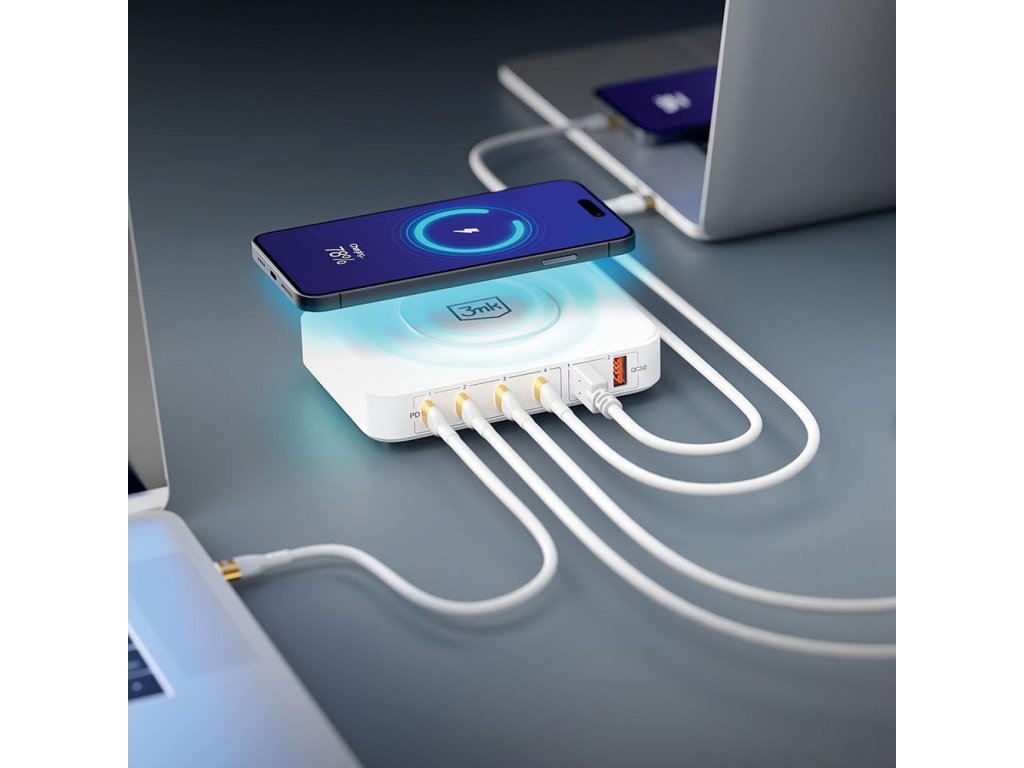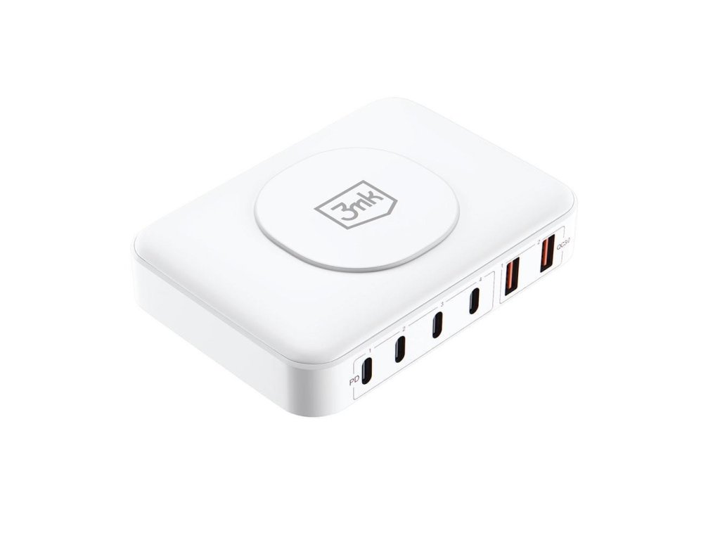 3mk síťová nabíječka - Hyper Charger PowerMax 100W, GaN 4x USB-C (PD) / 2x USB, bílá