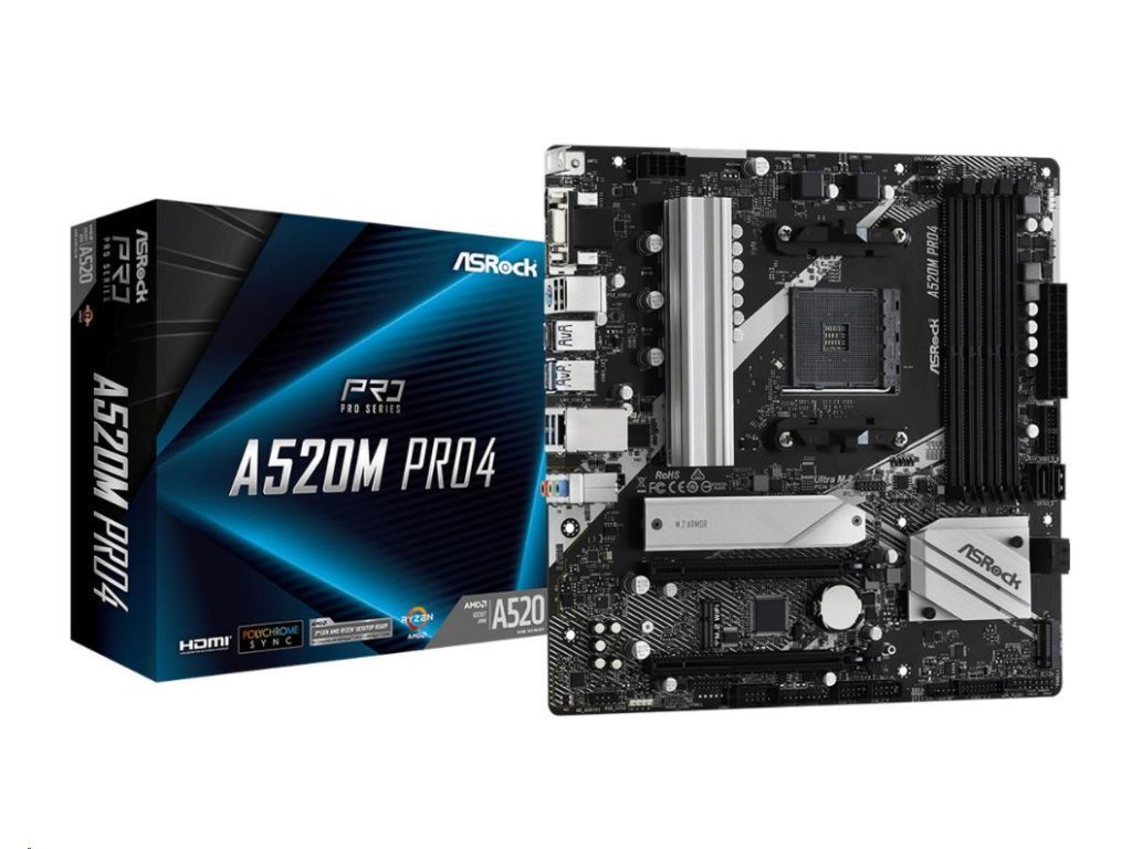 ASRock MB Sc AM4 A520M PRO4, AMD A520, 4xDDR4, HDMI, DP