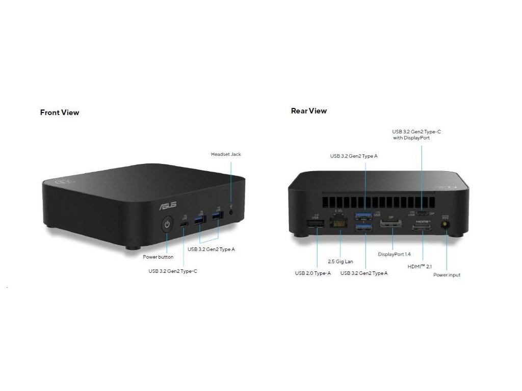 ASUS NUC 14 Essential RNUC14MNK2500002/N250 Procesor/DDR5-4800 SODIMM/USB-A,C/M.2 2280/Wi-Fi/LAN/EU Napájecí kabel