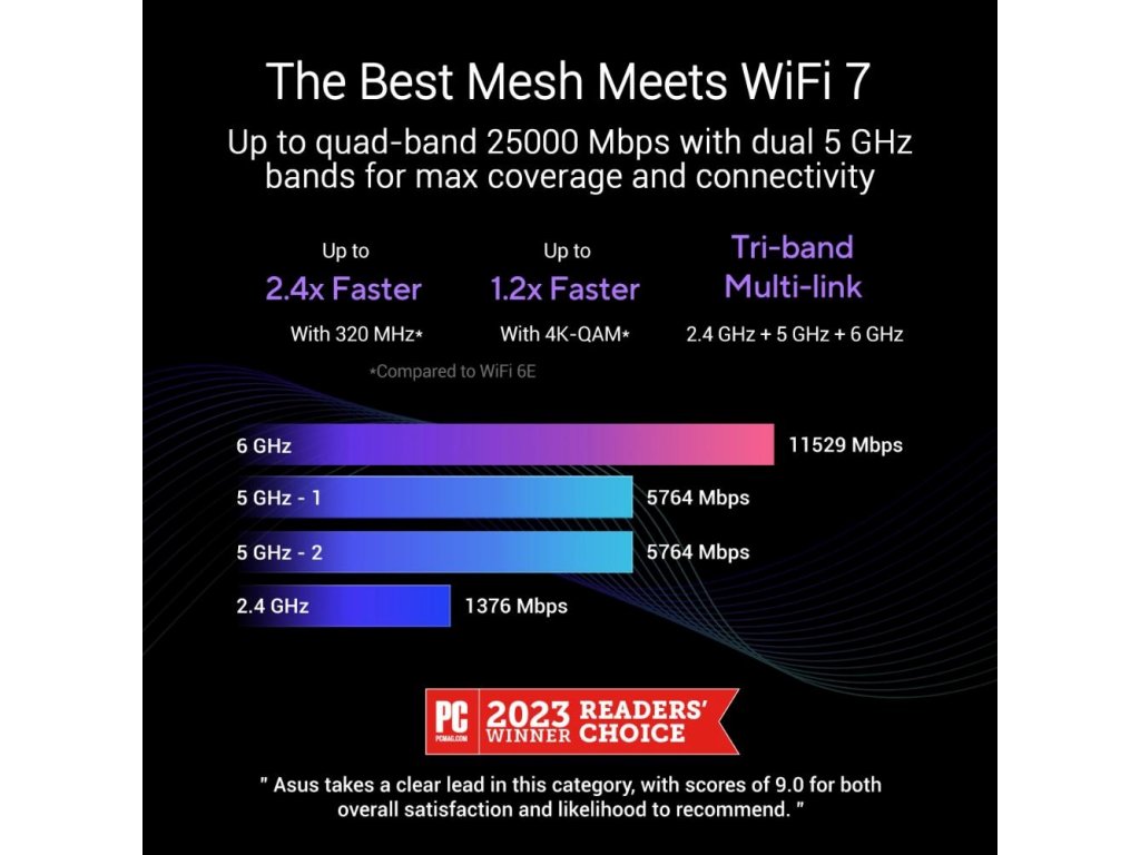 ASUS ZenWifi BQ16 3-pack, WiFi7 Extendable Router, AiMesh, 2x WAN/LAN, 3x LAN, 1x USB 3.0