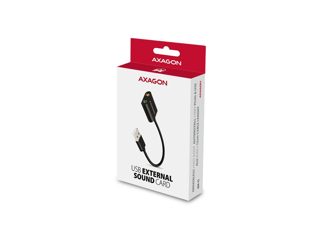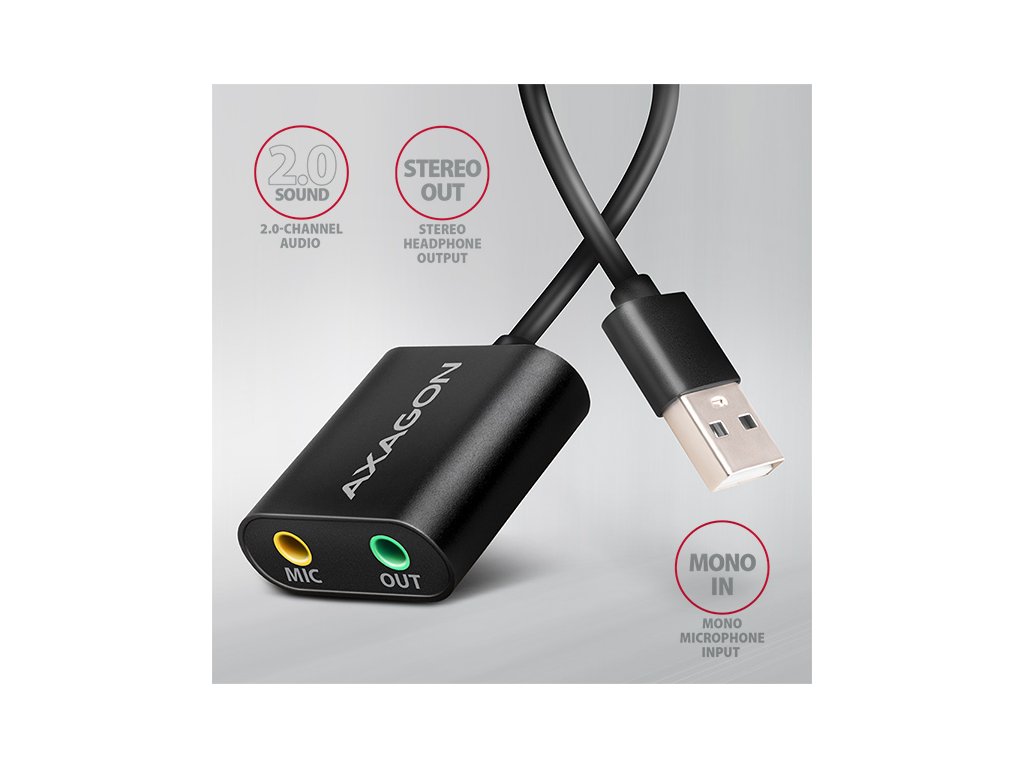 AXAGON ADA-12, USB 2.0 - externí zvuková karta, 48kHz/16-bit stereo, kovová, kabel USB-A 15 cm