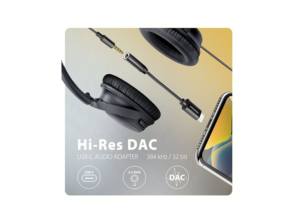 AXAGON ADA-HC, USB-C na 3.5mm jack - Hi-Res DAC audio adaptér, 384kHz/32bit, stereo