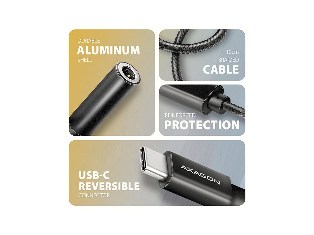 AXAGON ADA-HCPD, USB-C na 3.5mm jack - Hi-Res DAC audio adaptér, 384kHz/32bit, stereo, PD 60W 3A