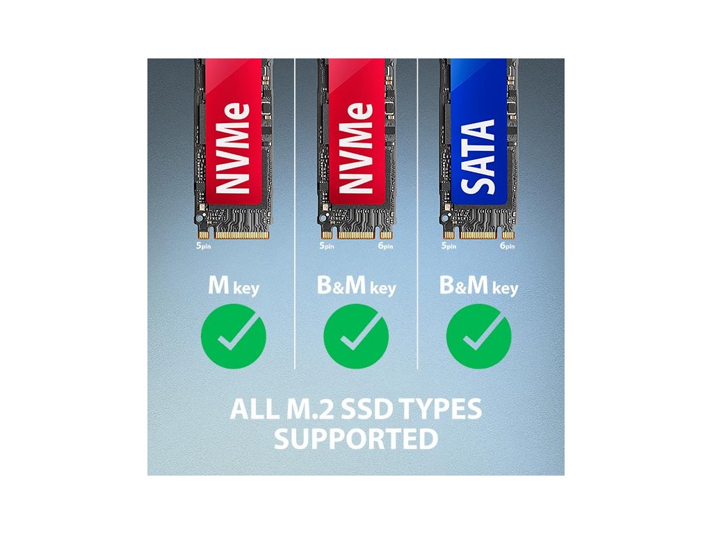 AXAGON ADM2-AM USB-A 10Gbps - M.2 NVMe & SATA SSD adaptér, kabel USB-A 10cm