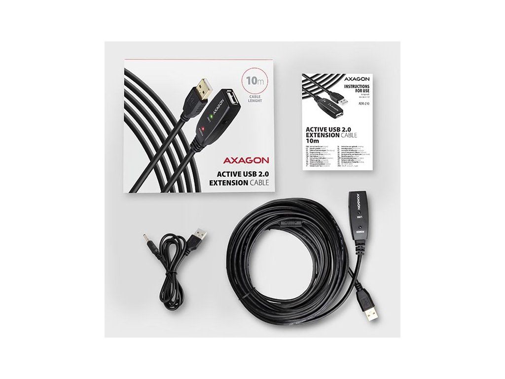 AXAGON ADR-210, USB 2.0 A-M -> A-F aktivní prodlužovací / repeater kabel, 10m