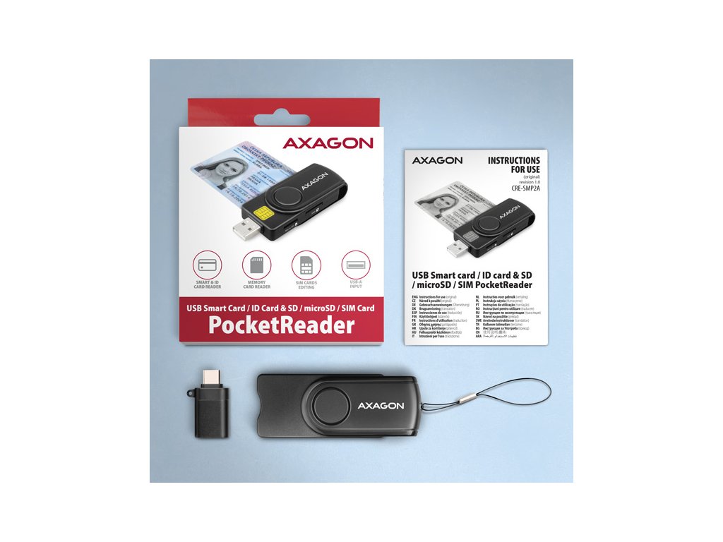AXAGON CRE-SMP2A, USB-A PocketReader 4-slot čtečka Smart card (eObčanka) + SD/microSD/SIM