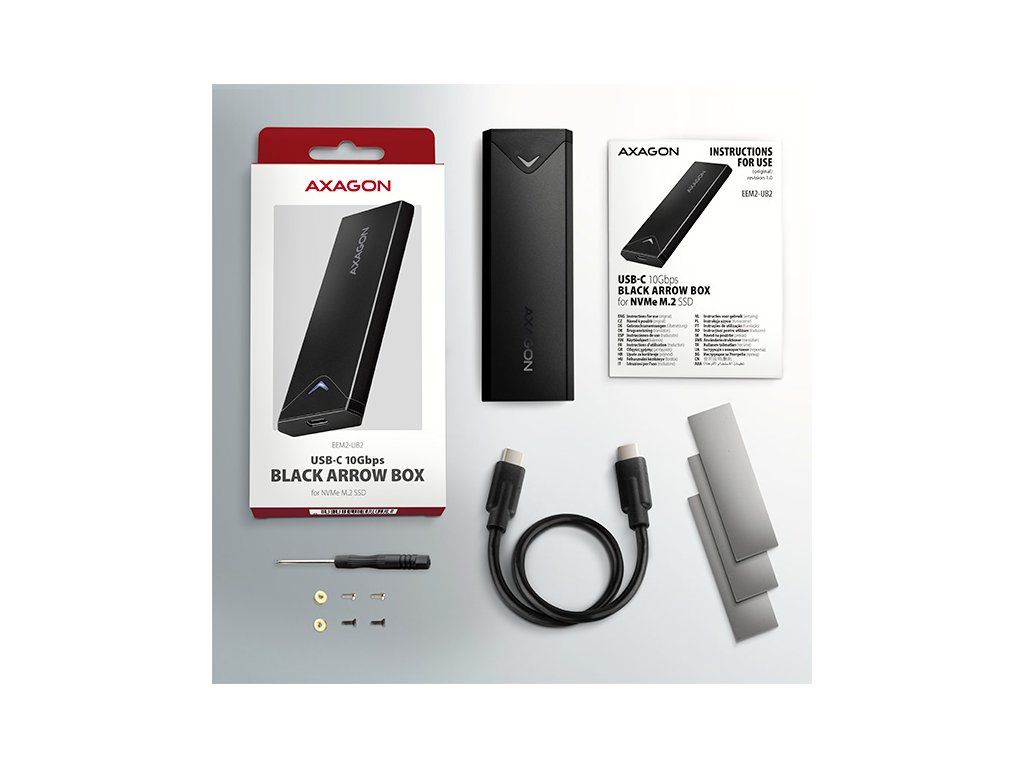 AXAGON EEM2-UB2, USB-C 10Gbps - M.2 NVMe SSD ARROW box, černý