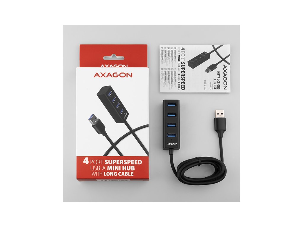 AXAGON HUE-M1AL, 4x USB 3.2 Gen 1 MINI hub, kovový, kabel USB-A 1.2m