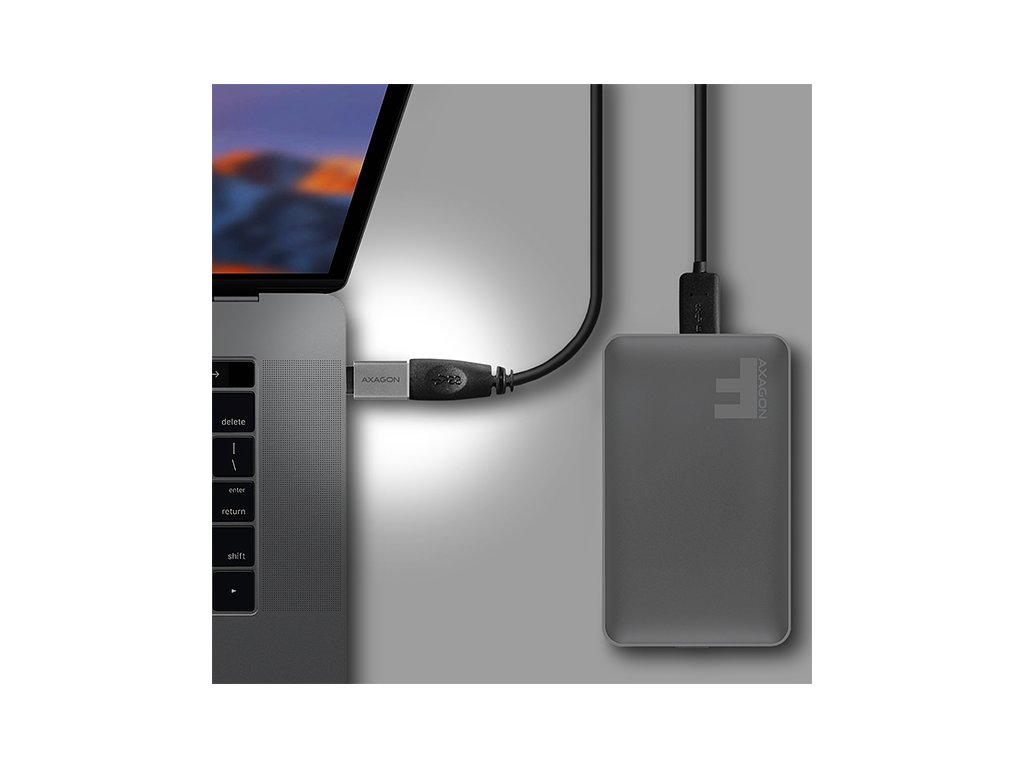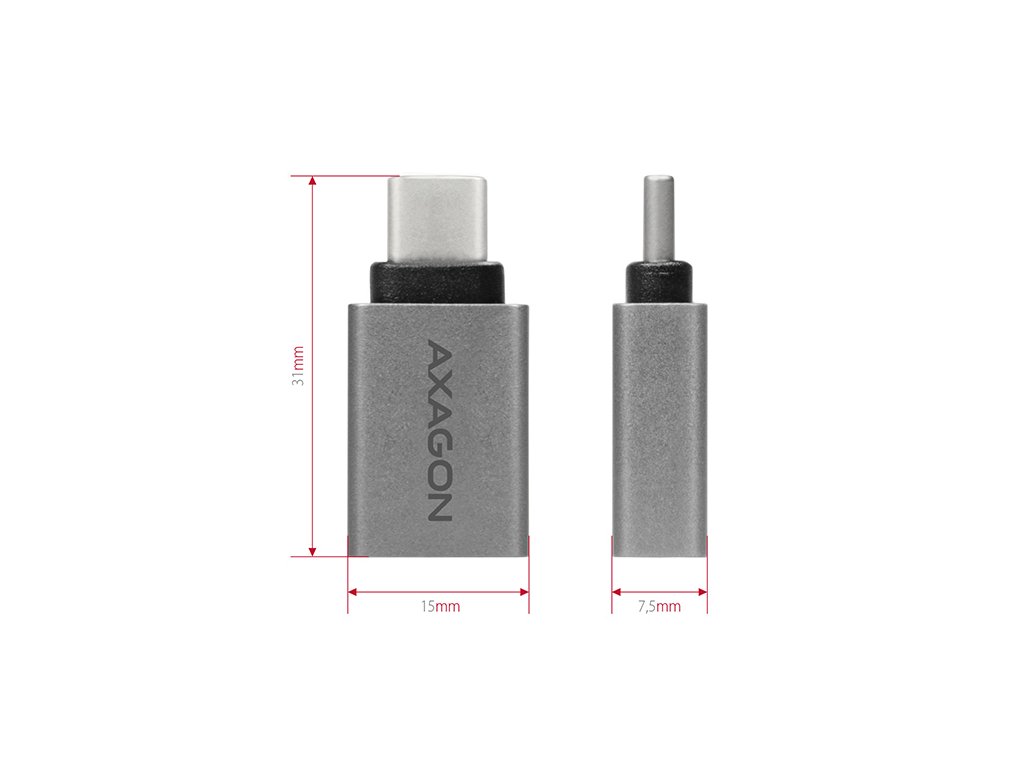 AXAGON RUCM-AFA, redukce USB-C (M) -> USB-A (F), USB 3.2 Gen 2, 3A, ALU