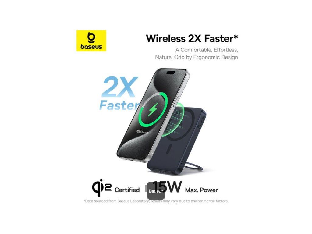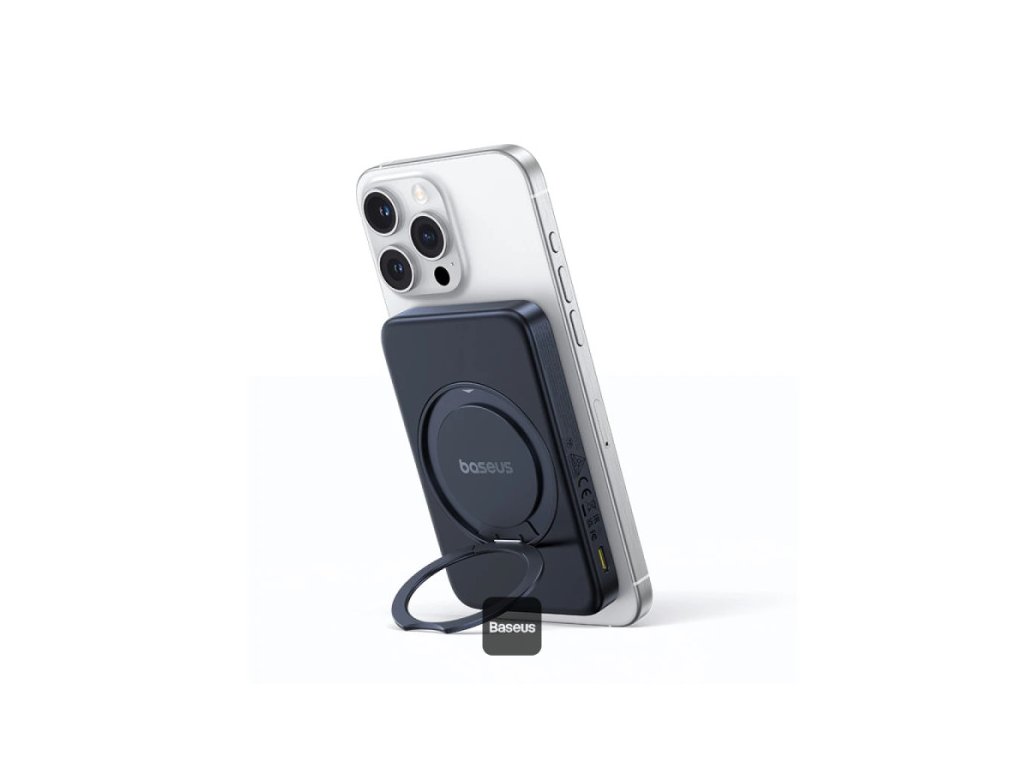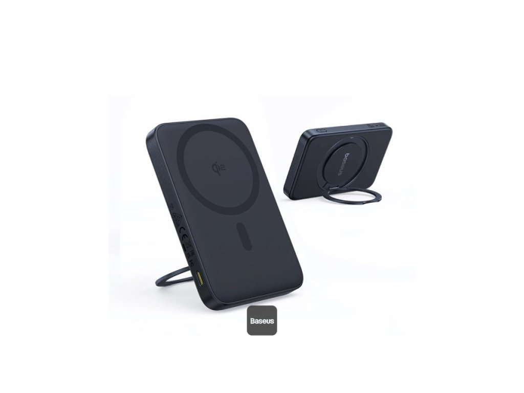 Baseus Powerbanka PicoGo Qi2 s otočným stojanem a bezdrátovým nabíjením 5000mAh 20W USB-C černá
