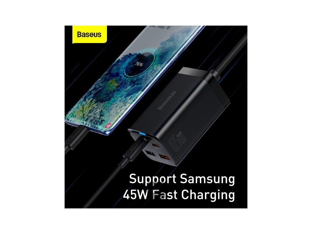 Baseus rychlonabíječka do sítě GaN3 Pro, 2x USB-C, 2x USB 65W černá