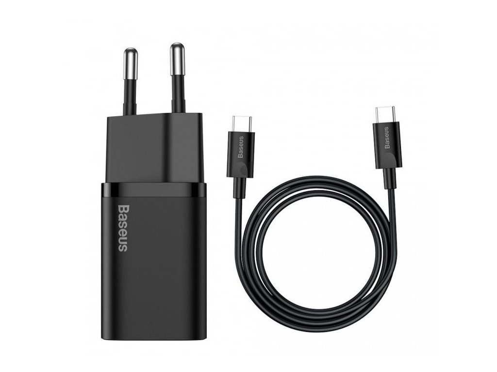 Baseus rychlonabíječka do sítě Super Si USB-C PD QC 25W (s kabelem USB-C na USB-C) černá