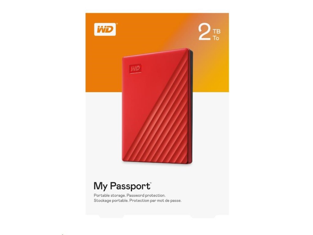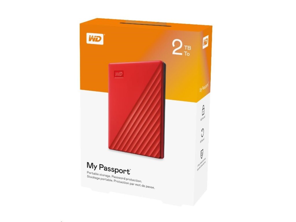 BAZAR - WD My Passport Portable 2TB, Externí HDD, USB 3.0, červená (Bez příšlušenství)