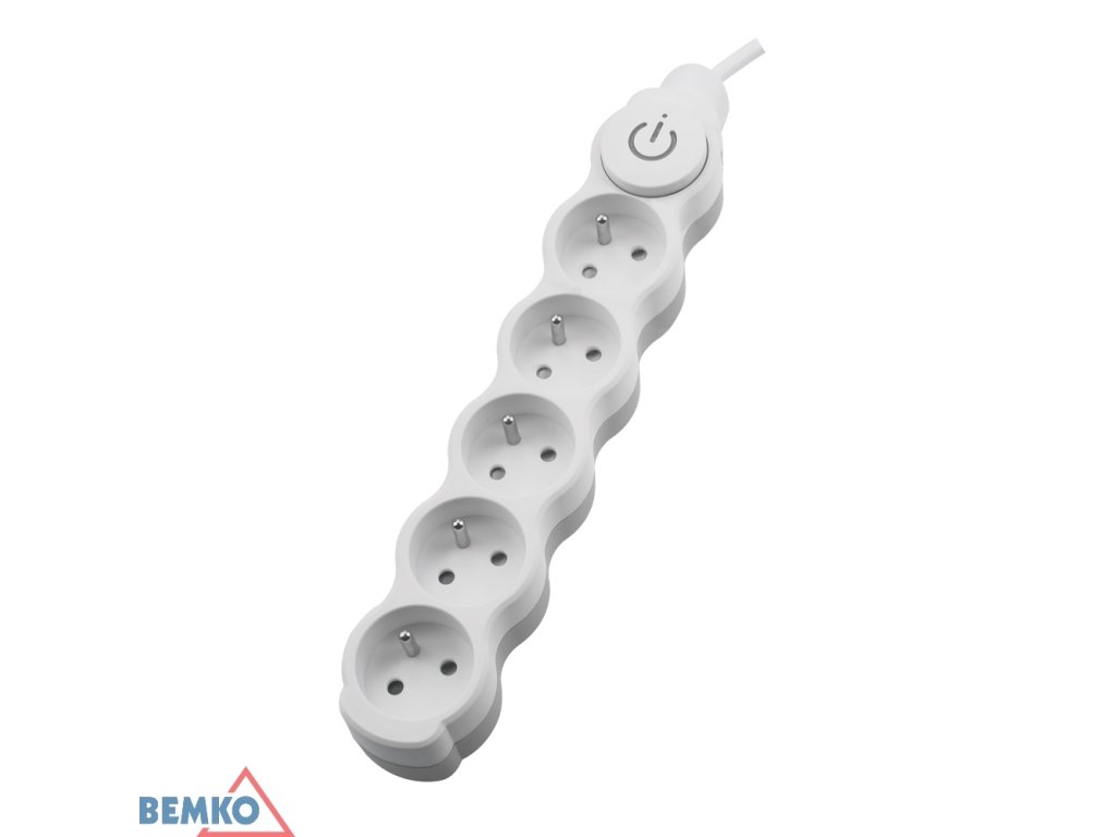 BEMKO Přívod prodlužovací 3m 5zásuvka 250V/16A s vypínačem IP20 bílá