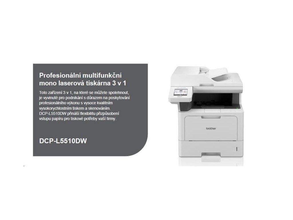 BROTHER multifunkce mono laserová DCP-L5510DW - A4 48ppm 1200x1200 512MB 250listů LAN USB WIFI DUPLEX ADF50