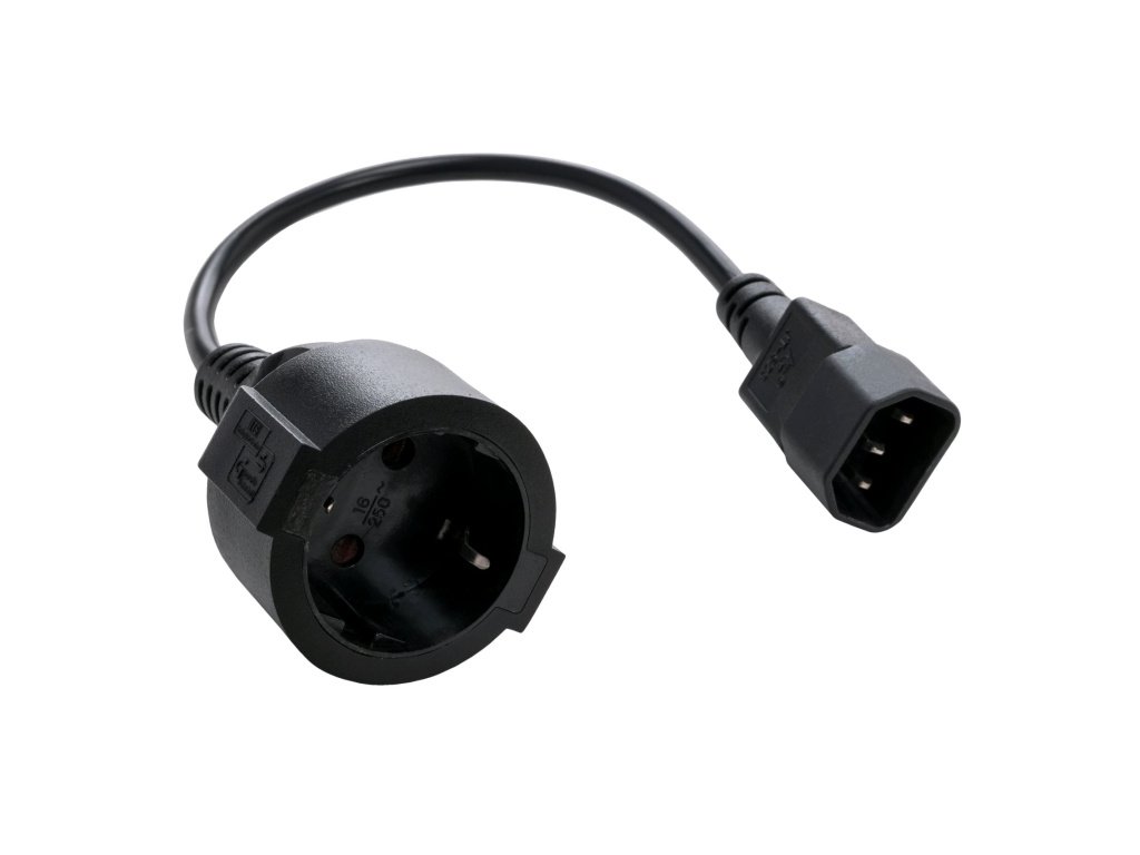 C-TECH Kabel síťový adaptér C14 (M) -> schuko (F), 15 cm