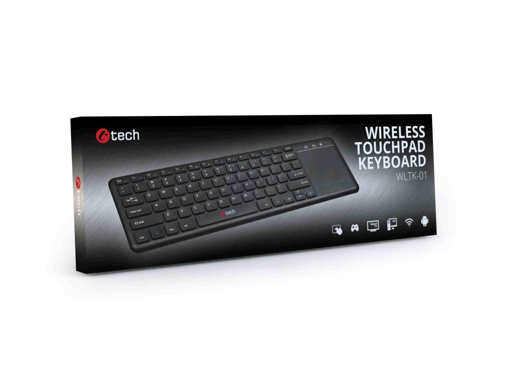 C-TECH klávesnice WLTK-01, bezdrátová s touchpadem, černá, USB
