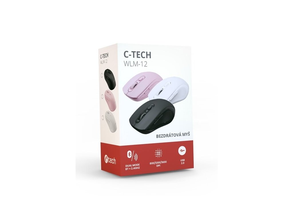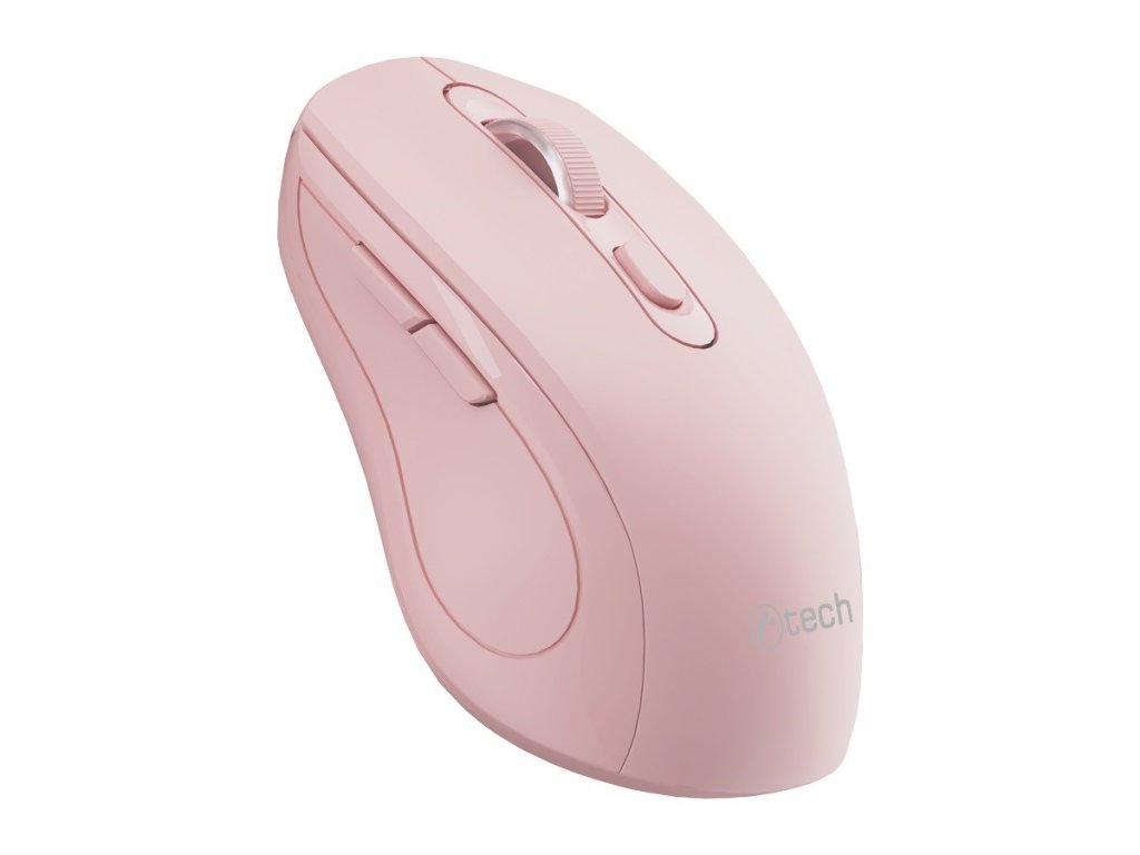 C-TECH myš Dual mode WLM-12PK, bezdrátová, 1600DPI, 6 tlačítek, růžová, USB nano receiver
