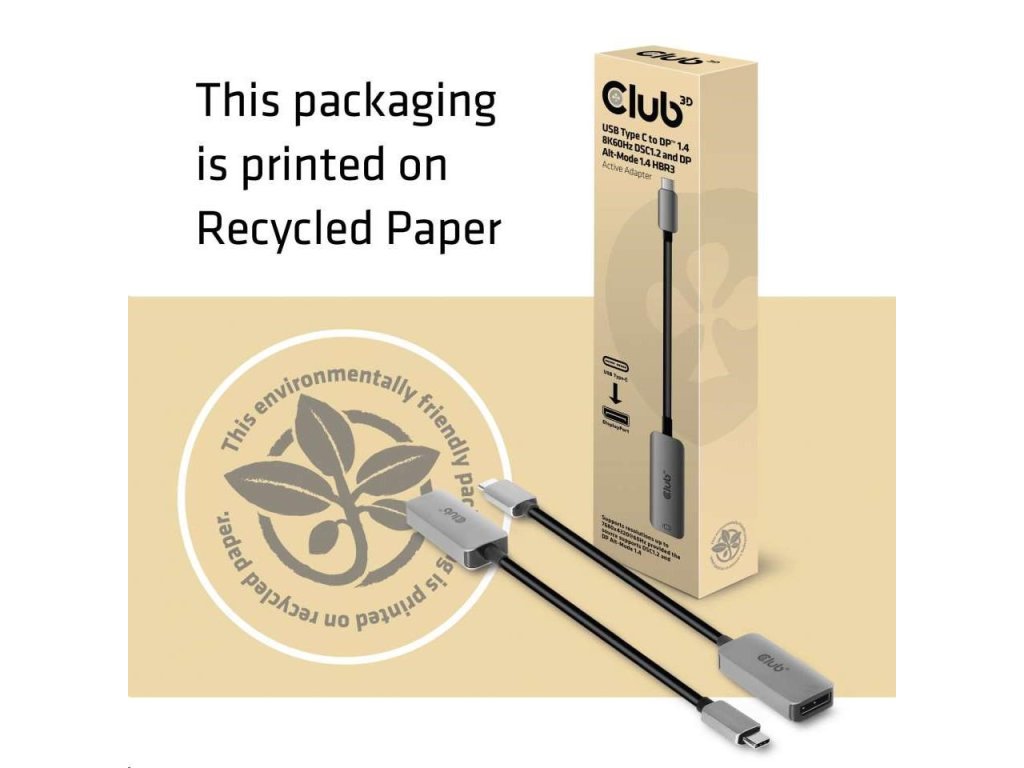 Club3D Adaptér aktivní USB-C na DisplayPort 1.4, 8K60Hz DSC1.2 HDR HBR3
