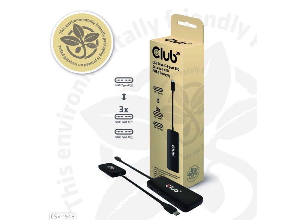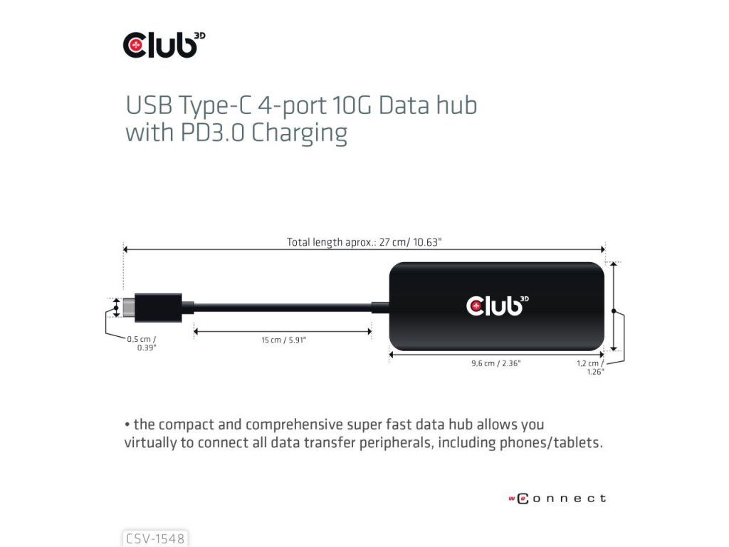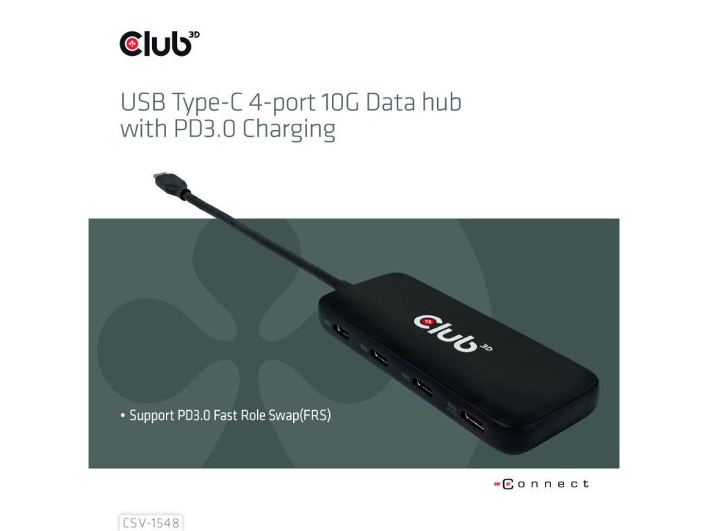 Club3D hub 1xUSB-C na 4xUSB-C, 10Gbps port, PD 3.0