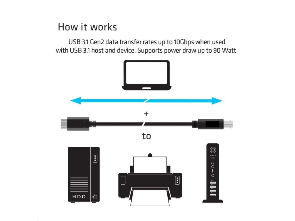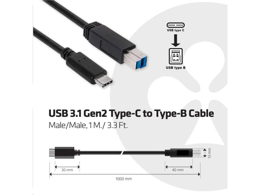 Club3D Kabel USB 3.1 typ C Gen2 na USB typ B (M/M), 1m