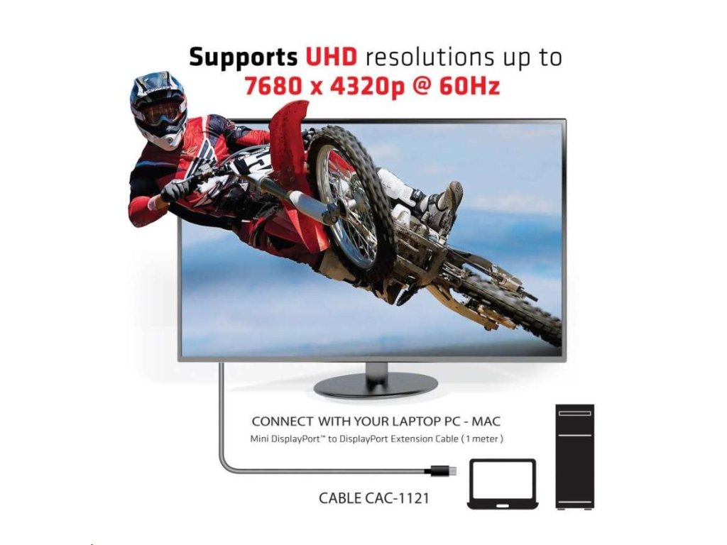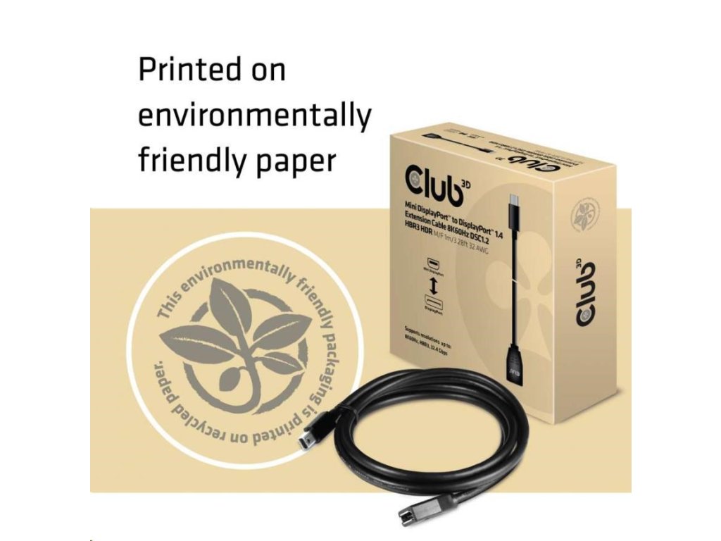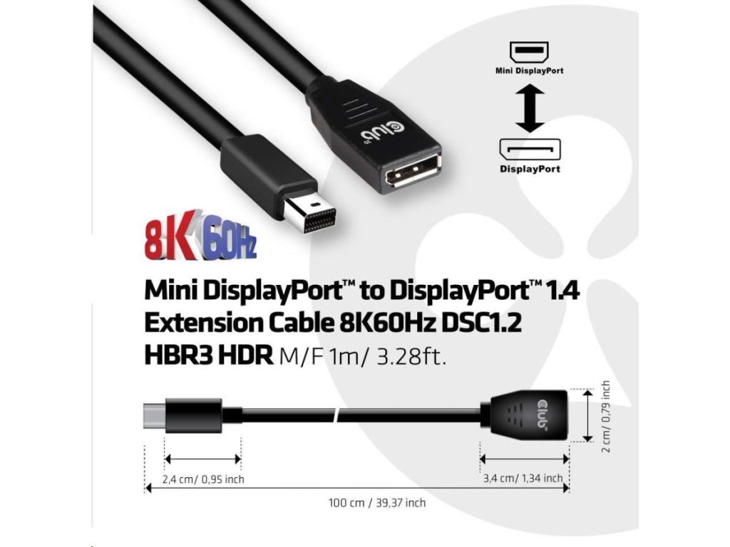 Club3D Prodlužovací kabel Mini DisplayPort 1.4 na DisplayPort 8K 60Hz DSC 1.2 HBR3 HDR Bidirectional (M/F), 1m