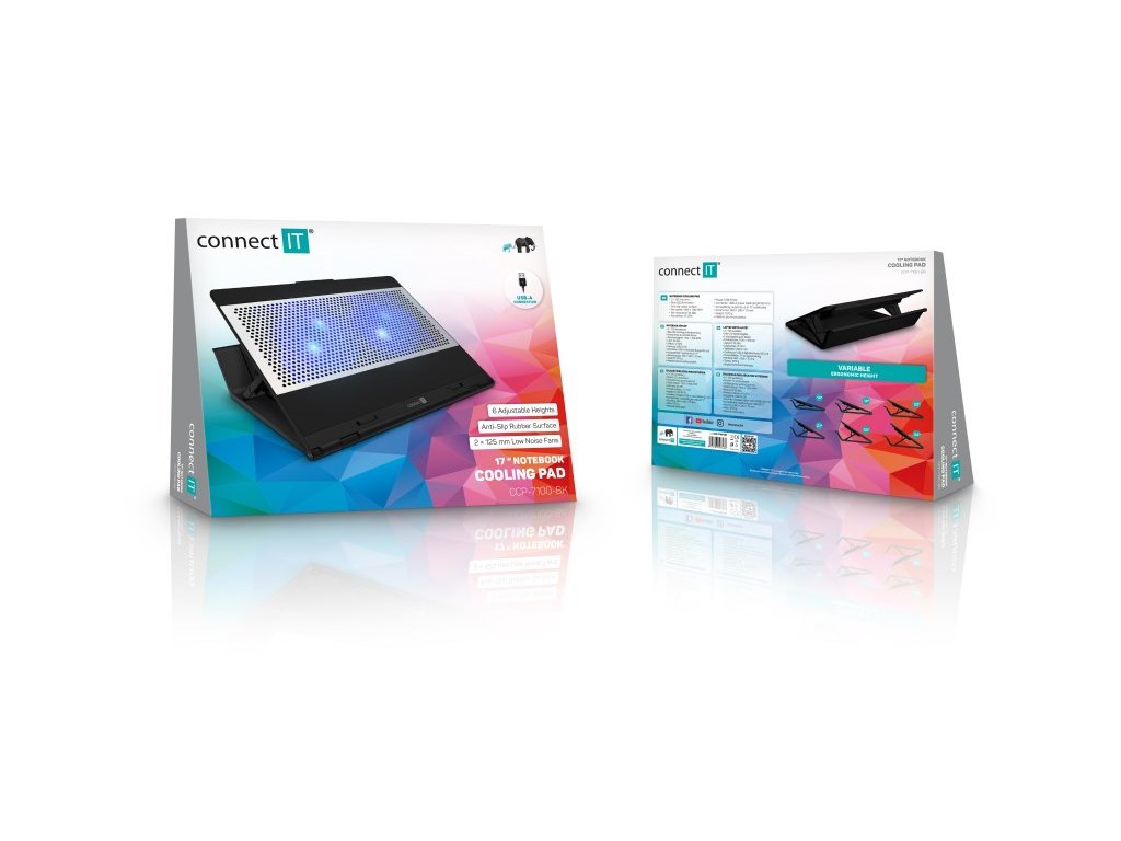 CONNECT IT FrostBlast chladící podložka pod notebook s modrým podsvícením, ČERNÁ