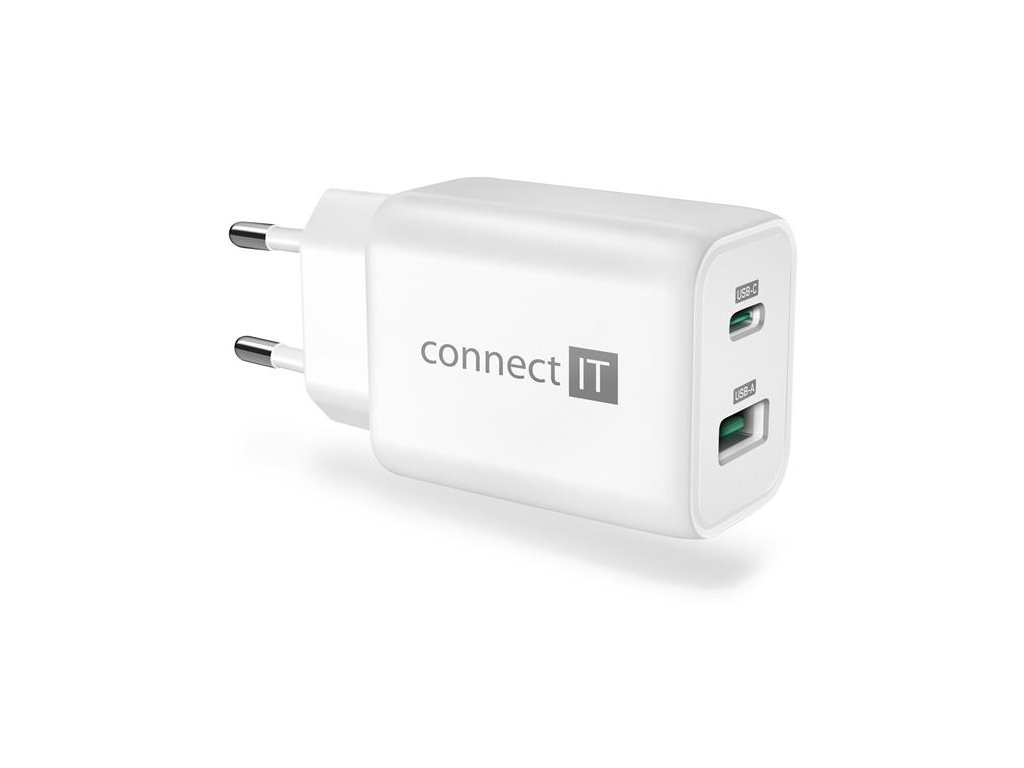 CONNECT IT Wanderer2 GaN nabíjecí adaptér 1×USB-C + 1xUSB-A, 33W PD, BÍLÝ