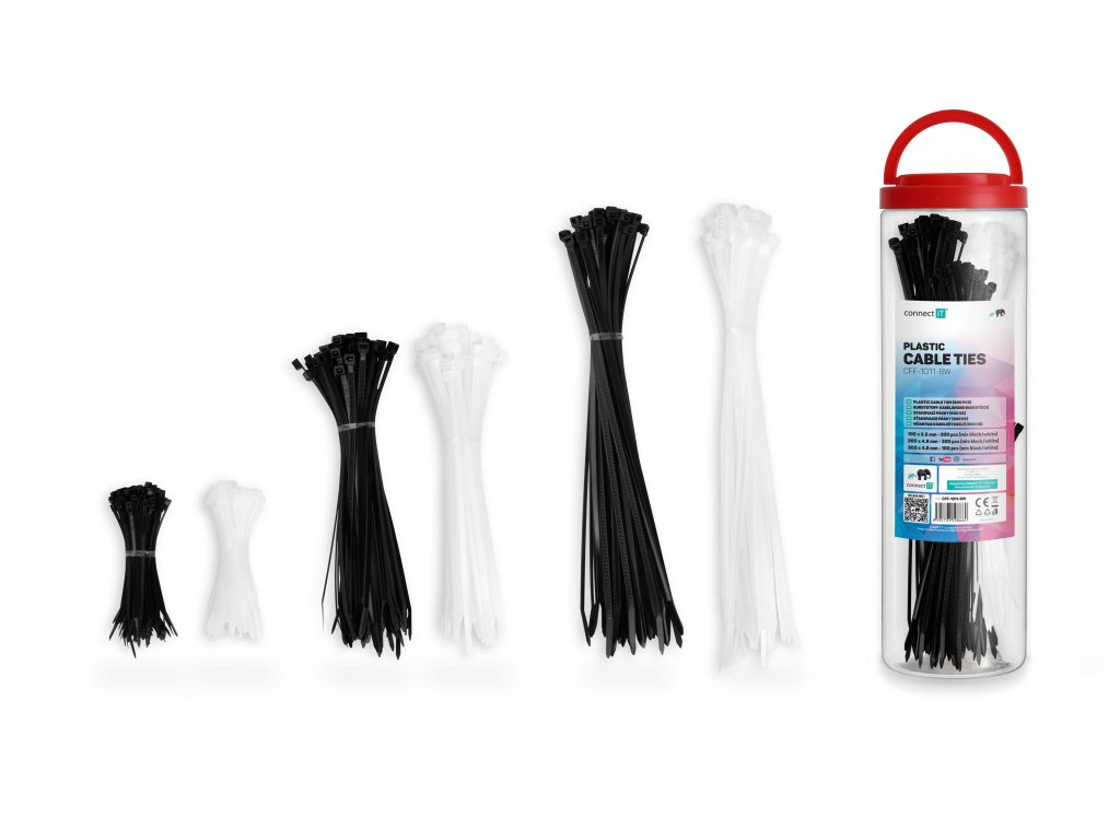 CONNECT IT ZipTie Stahovací pásky na kabely 600ks ČERNÁ/BÍLA