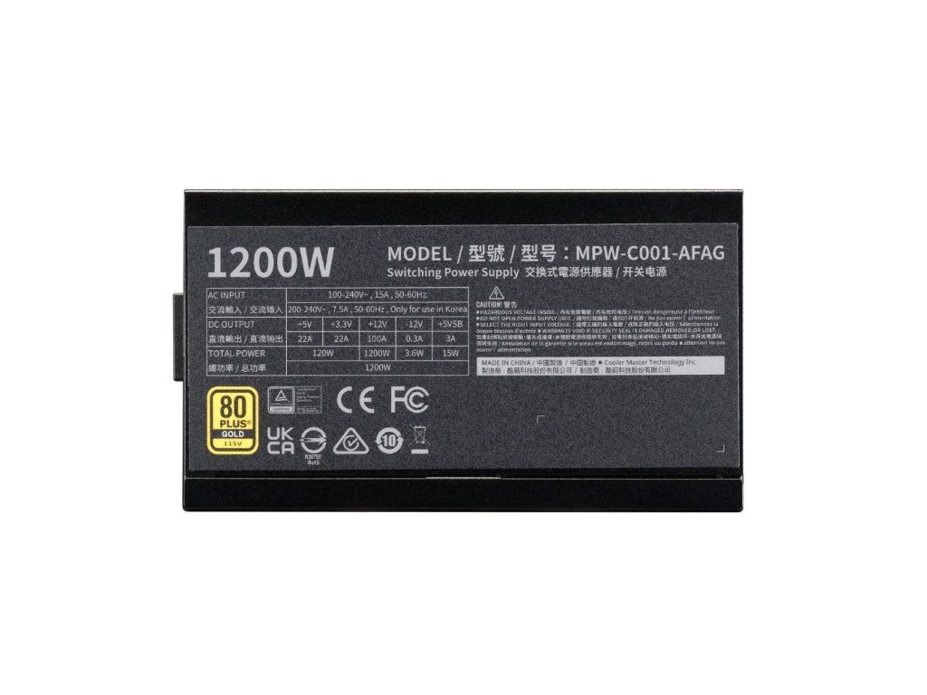 Cooler Master zdroj ELITE Gold 1200W FM, 135mm, Plně modulární, 80 Plus Gold, ATX 3.1