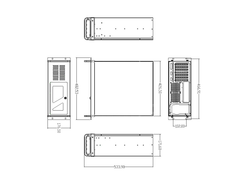 - case včetně úchytů 178 x 488 x 535 mm (V x Š x H)