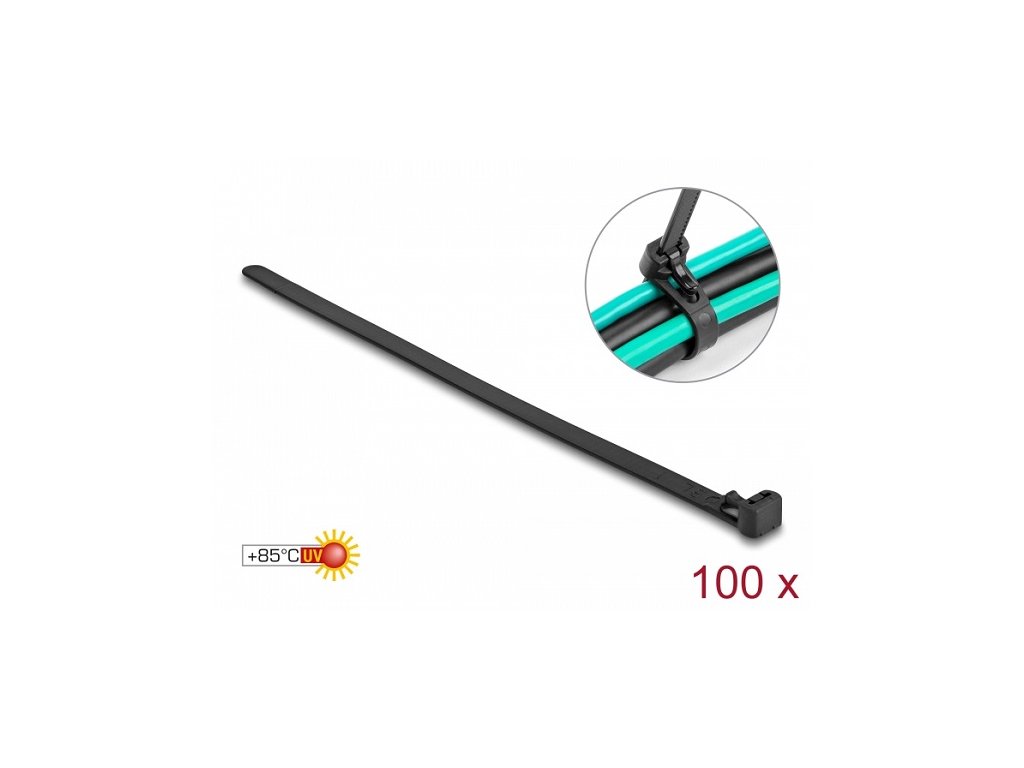 Delock Kabelové stahovací pásky pro opakované použití tepelně odolné D 150 x Š 7,5 mm 100 kusů černé