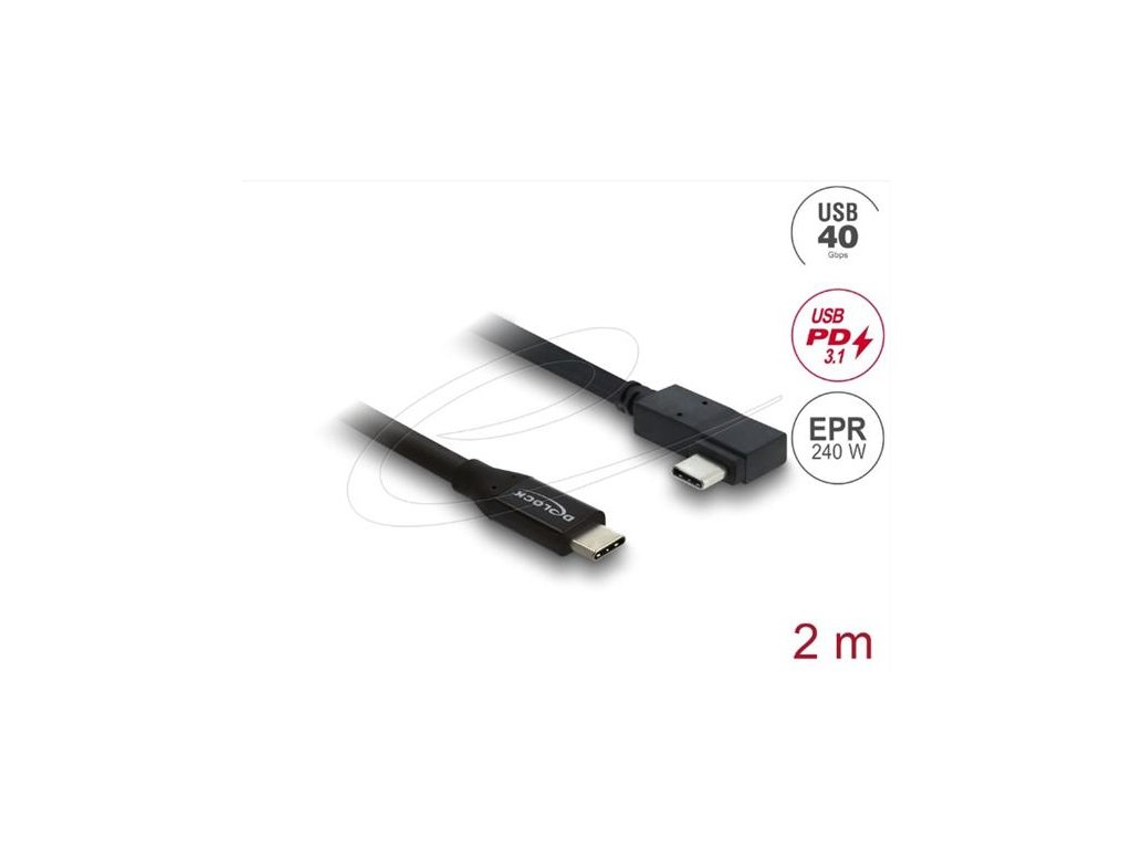 Delock Koaxiální kabel USB 40 Gbps pravoúhlý levý / pravý USB PD 3.1 240 W 2 m